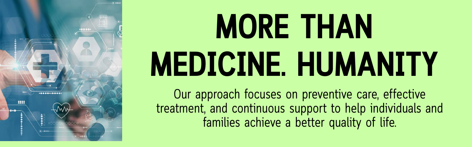 Our mission is to deliver compassionate, personalized care that meets the unique needs of every individual. Whether you're seeking routine check-ups, specialized treatments, or urgent care, we strive to make each visit a positive experience, putting your health and comfort first.